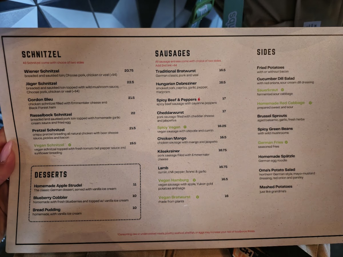 Bratwurst, Kasekrainer & Chicken spicy mango & jalapeño sausage; served with homemade mustards